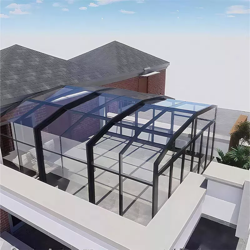 Güneşlenme odası benimser "dış alüminyum + iç ahşap kompozit çerçeve + yalıtımlı temperli cam" yapısı. Alüminyum alaşımlı dış kısım yük taşıma gücü ve hava koşullarına dayanıklılık sağlarken iç kısım ahşap görsel sıcaklığı ve yaşam konforunu artırır.